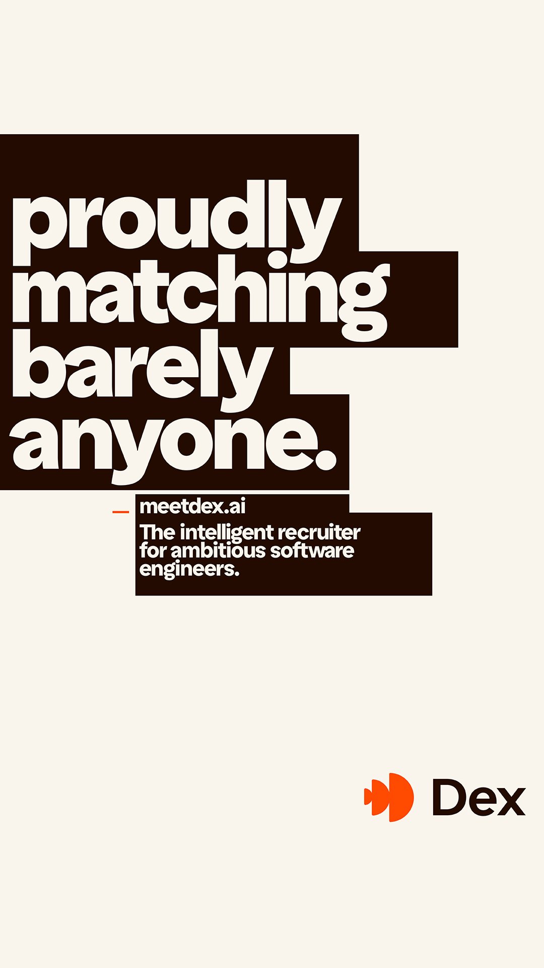 Validated with the audience prior to launch, the creative resonated deeply for its authenticity.The headlines lay it out for the record - Dex filters out all but the best roles and candidates.