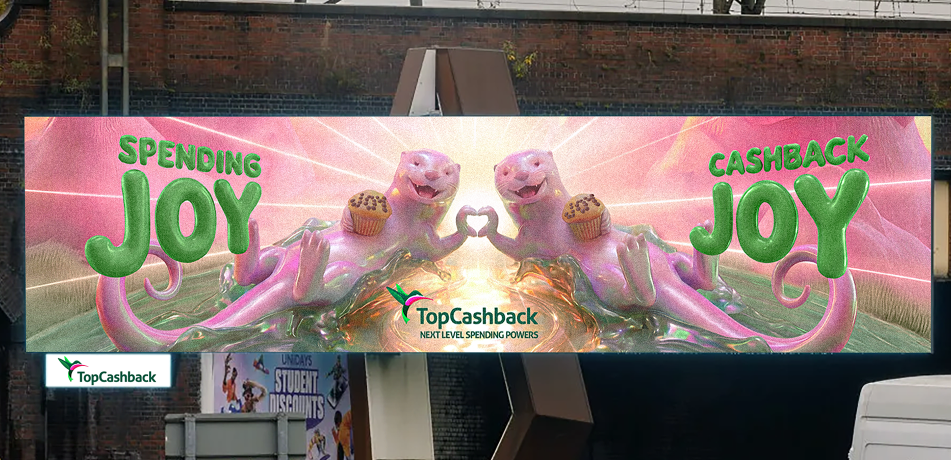 At the heart of the launch campaign, running on TV, cinema, poster, print and social media, is the concept of double joy — the rush of a perfect purchase combined with the thrill of receiving a cashback bonus. This is brought to life through pairs of colourful characters and by leaning into visual and audio ASMR to elicit a physically joyful response in the viewer. From the tactile fur of cuddly kittens to glistening otters and "squidgy" planets, each frame is engineered to trigger an emotional and physical hit of dopamine.